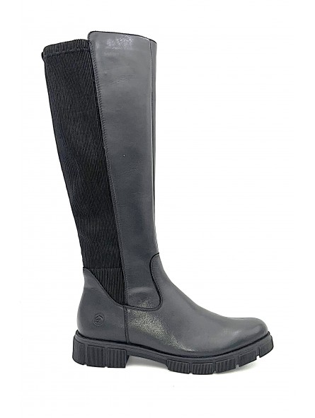 Alliez confort , chaleur et style cet hiver avec Telma de Remonte . en cuir et stretch noir , elle garde vos pieds bien au chaud avec son intérieur molletonné tout doux .