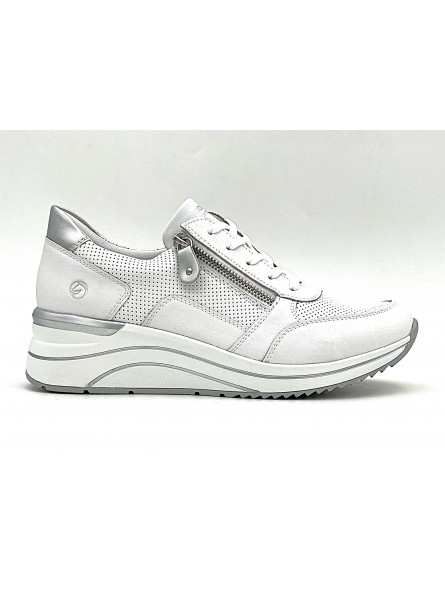 Le sneaker Yssé de Remonte vous permet de marcher confortablement tout en restant féminine avec sa semelle compensée de 5 centimètres . Son cuir perforé assure une bonne aération pour cet été et son zip latéral facilite un enfilage rapide et pratique au quotidien . Coté confort , sa semelle extérieure légère et amortissante ainsi que sa semelle intérieure REMONTE SOFT EXTRA WIDE à mémoire de forme vous assurent une marche légère et endurante pour la journée .