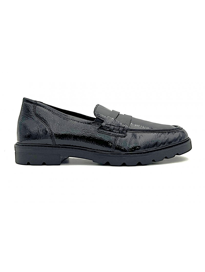 Allure chic , confort absolu . Le mocassin Torie de Remonte allie élégance et modernité avec son vernis noir et son passant façon collège . Sa semelle antichoc ainsi que sa première REMONTE SOFT à mémoire de forme assurent un confort optimal tout au long de la journée . Doublure chaude pour un hivers au chaud . Un modèle polyvalent pour un style casual chic sans compromis .